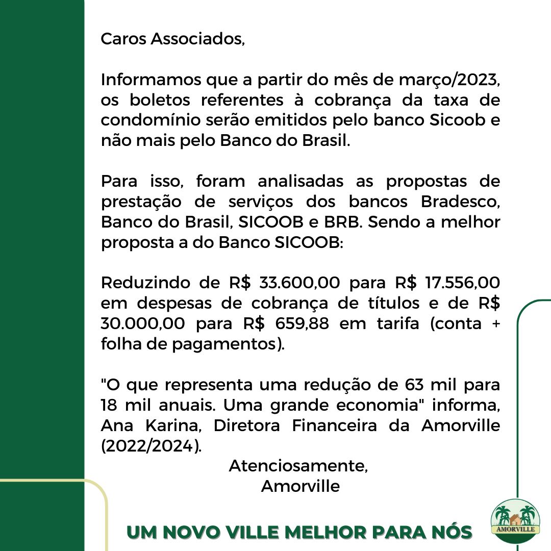 A partir deste mês os boletos serão emitidos pelo Banco SICOOB