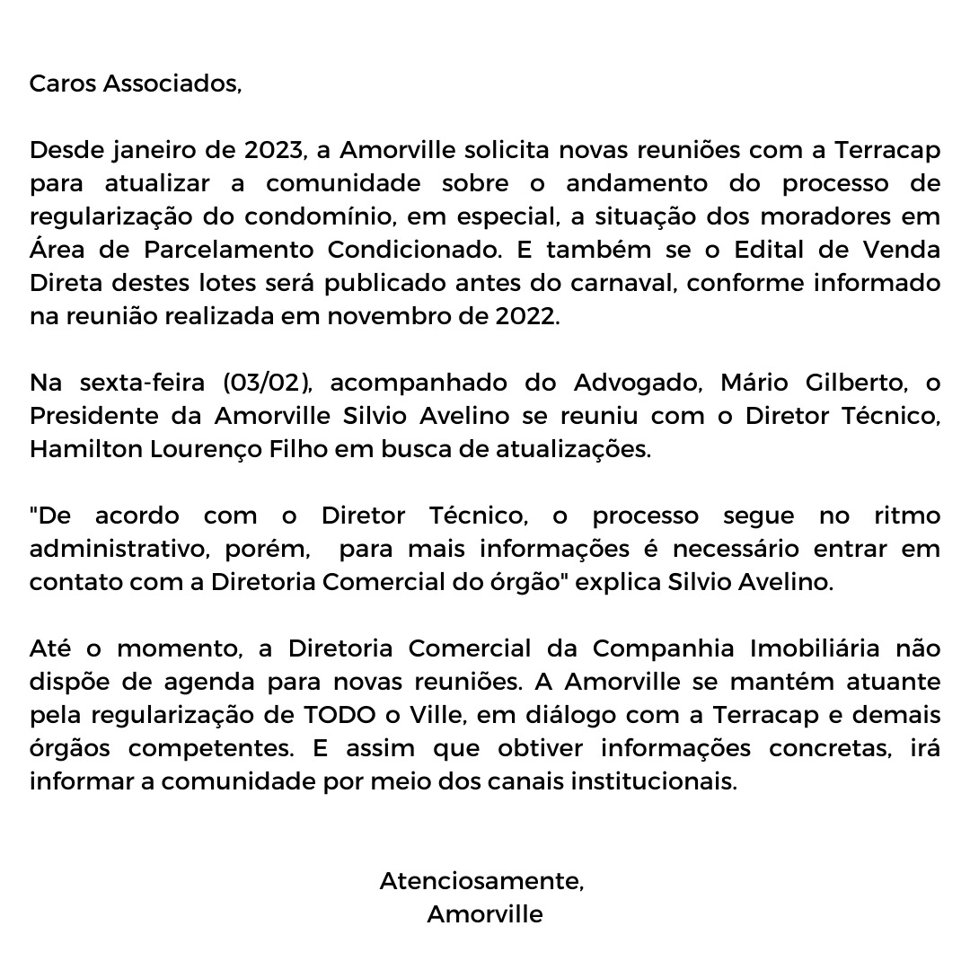 Amorville mantém diálogo com a Terracap sobre o andamento do processo de regularização