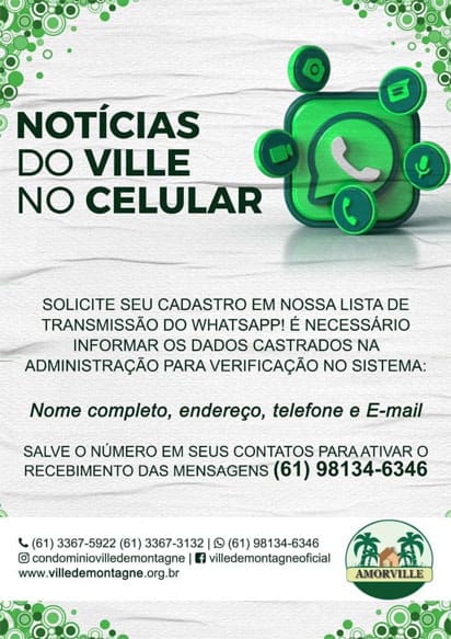 Siga as nossas redes sociais: @condominiovilledemontagne e https://www.facebook.com/villedemontagneoficial
