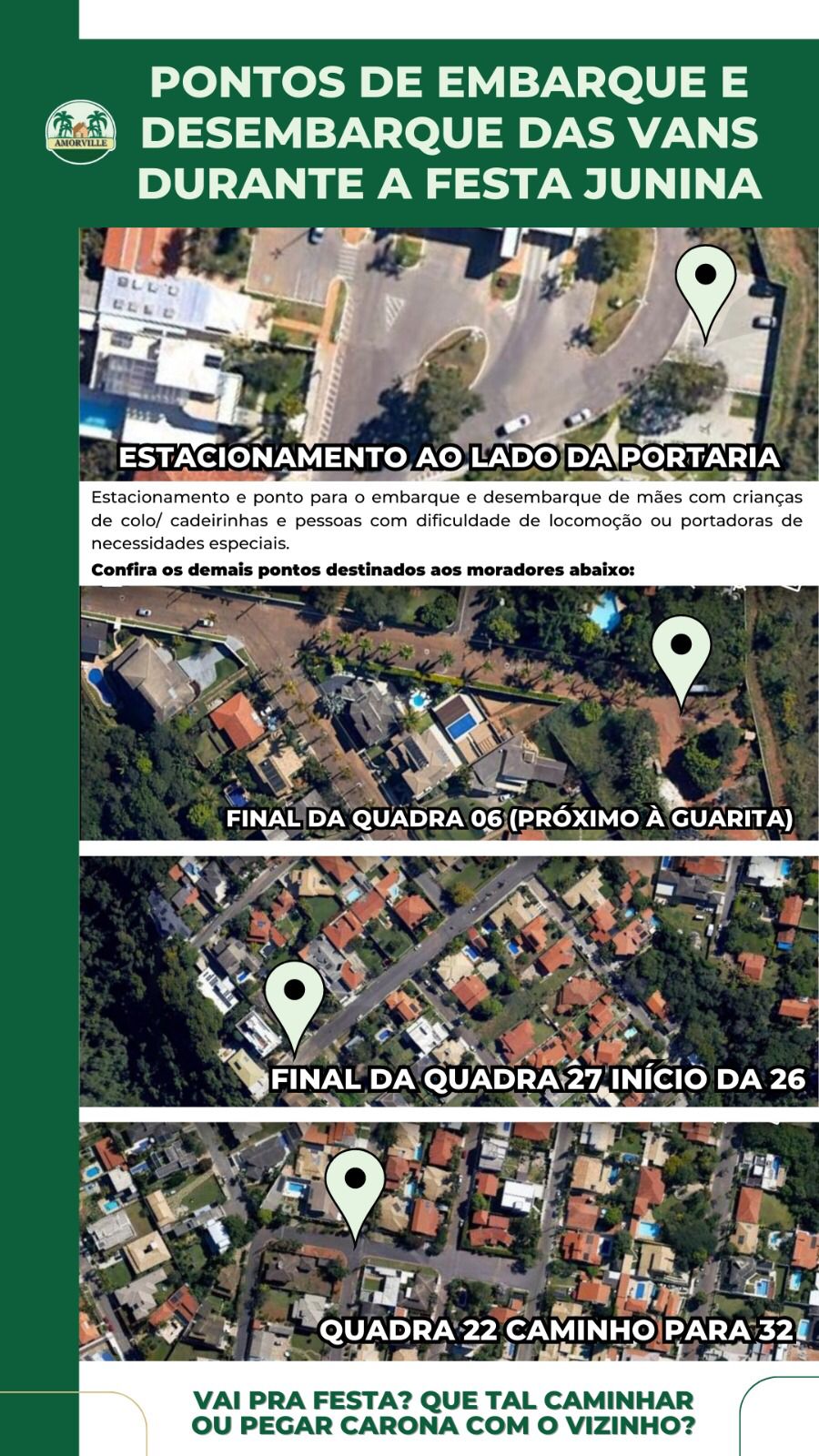 Nos locais indicados haverá funcionários da Amorville para auxiliá-los Sejam gentis e curtam o nosso Arraial.