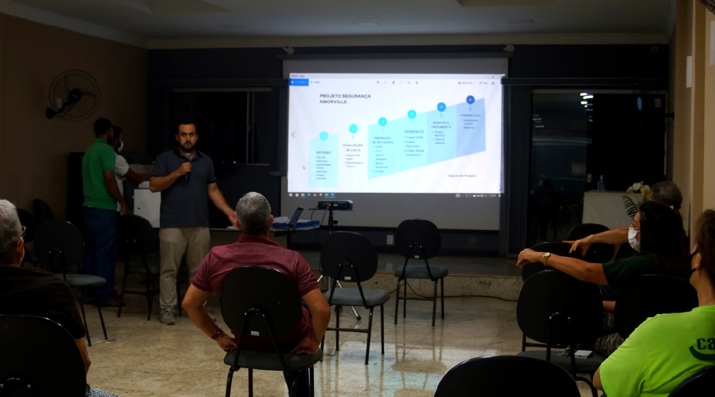 Na terça-feira (07/12) moradores e membros da Comissão de Segurança, Comissão de Obra e da Diretoria Executiva reuniram-se no salão de eventos da Amorville para a apresentação do Plano de Segurança, elaborado pela empresa Nasa Tecnologia, em conjunto com a Comissão de Segurança e Diretoria da Amorville (biênio 2020-2022).
