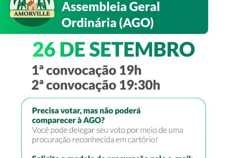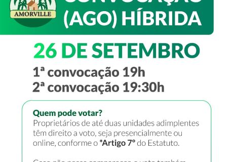 🚨 CONVOCAÇÃO - ASSEMBLEIA GERAL ORDINÁRIA (AGO) HÍBRIDA 🚨 🔔 Quem pode votar? Proprietários de...